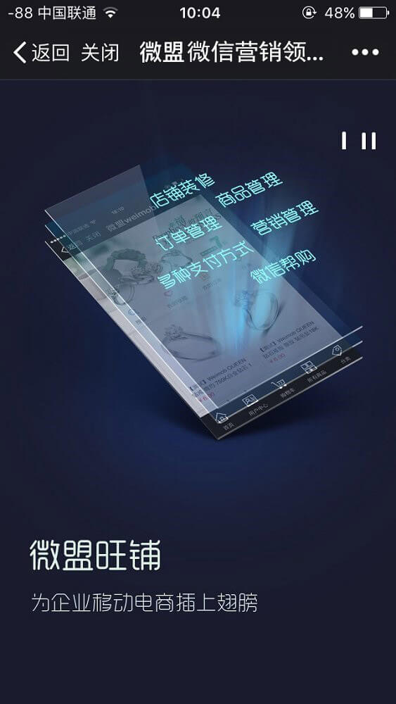 微场景是当下较为流行的传播方式之一。微盟微场景提供纯图片、刮卡画面、按钮画面、视频画面等多种风格并可以搭配全局的背景音乐。将要传播的内容场景化,借助社交网络迅速传播,节省了推广成本,扩大了传播范围。